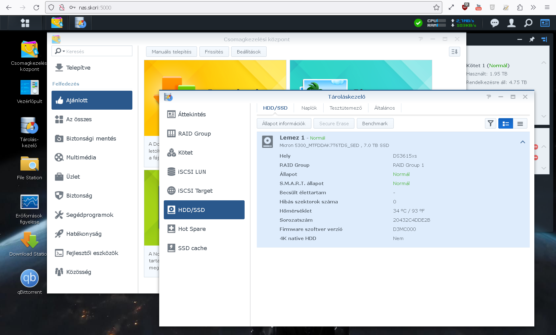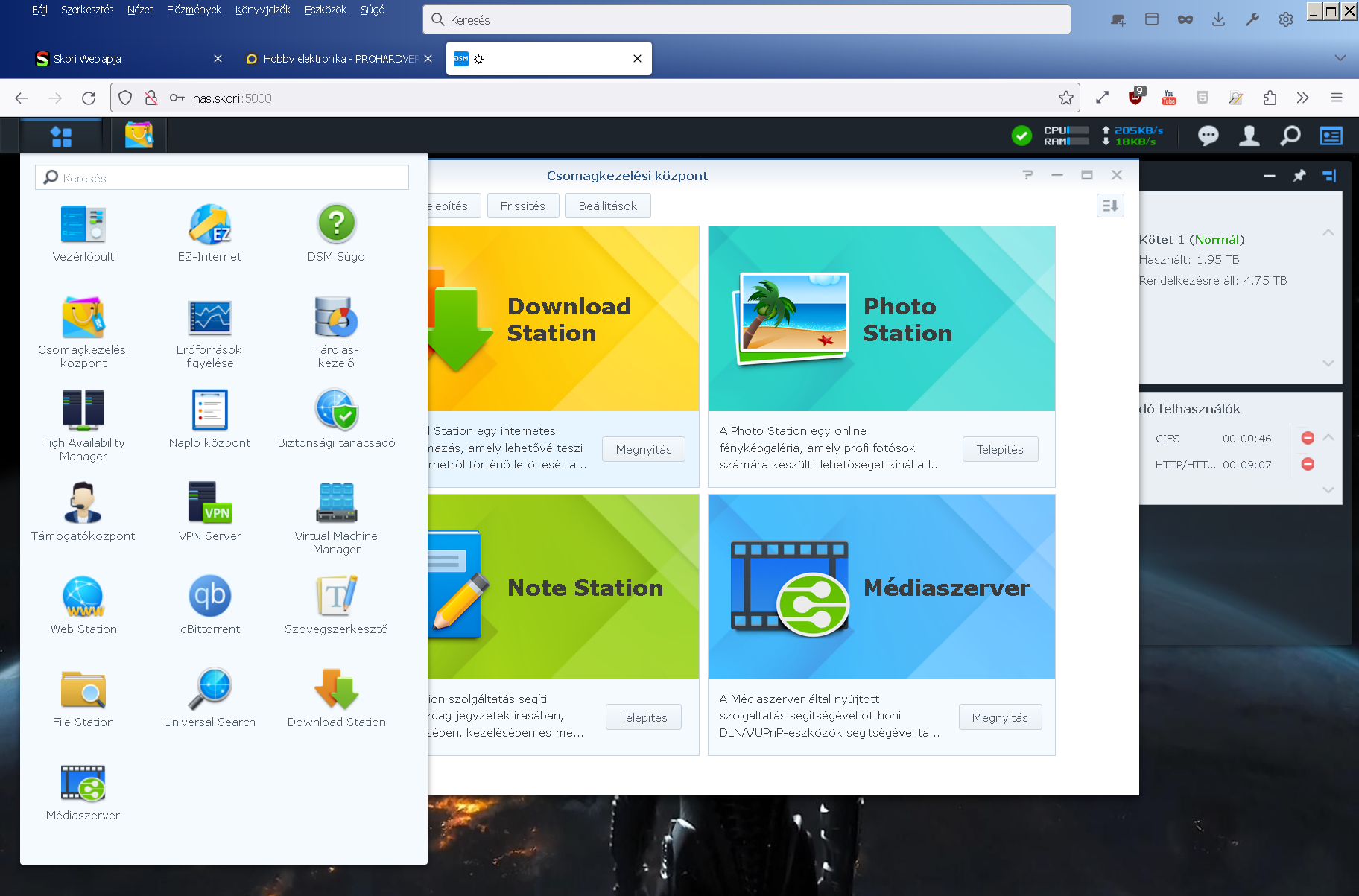 A Synology operációs rendszere ingyen letölthető a gyártó weblapjáról, és a hozzá készült további, telepíthető