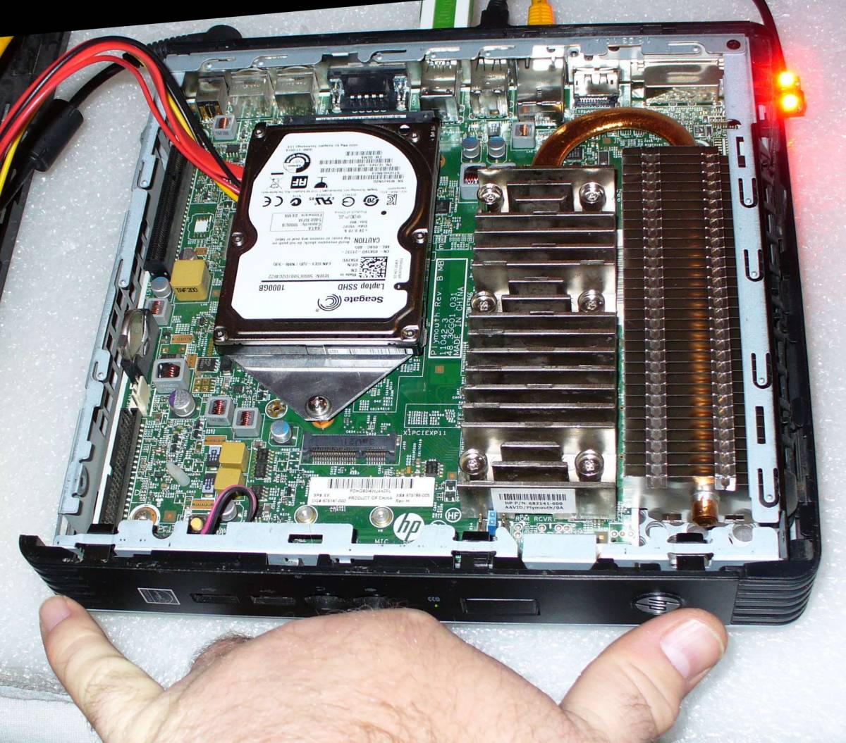 Ez a tenyérnyi kis PC alig nagyobb, mint a beleépíthető SATA felületű, 2,5"-os HDD/SSD. Passzív hűtésű, azaz teljesen hangtalan.