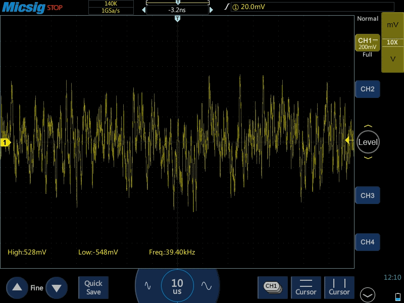 Ettől még működik ugyan, de nem ártott volna ennél sokkal jobb komparátort használni. Az is látszik hogy a véletlen bit generátorok sokkal nagyobb sebességű mintavételt is lehetővé tennének,